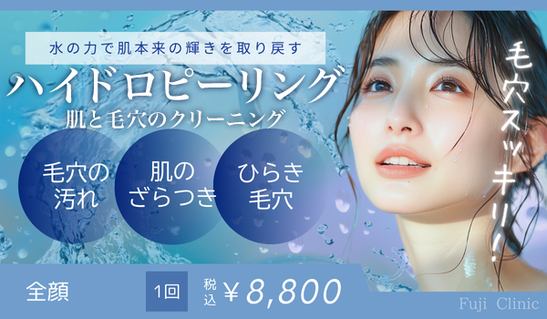 フジクリニックのハイドロピーリングは、従来の毛穴洗浄トリートメントよりも効果的に毛穴の奥の汚れを取り除き、肌質改善をサポートします!